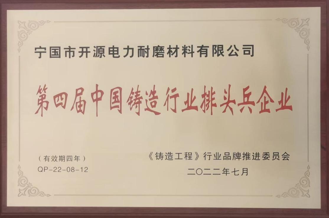 開源耐磨再獲“中國鑄造行業排頭兵企業”榮譽稱號